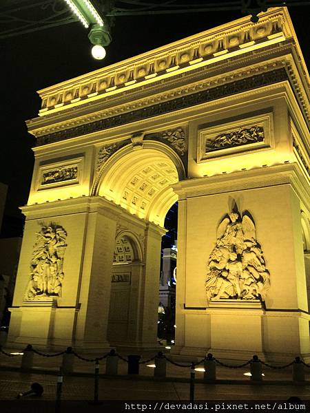 夜色中看見發光的偽凱旋門,