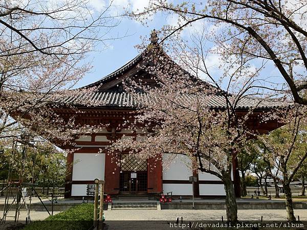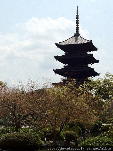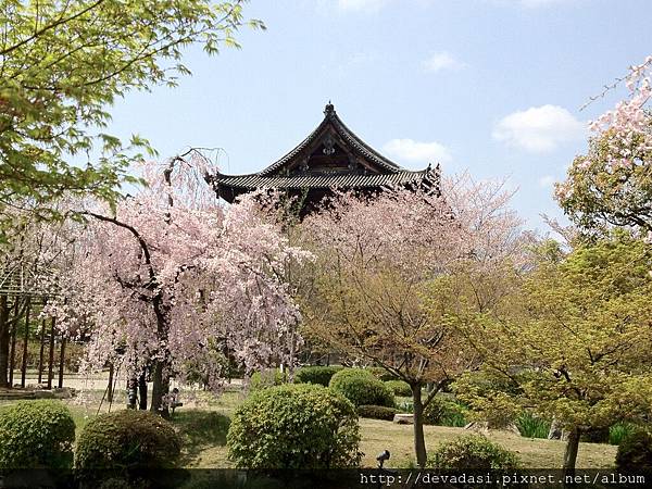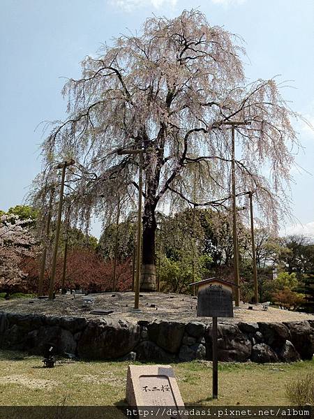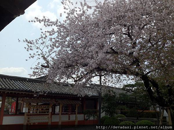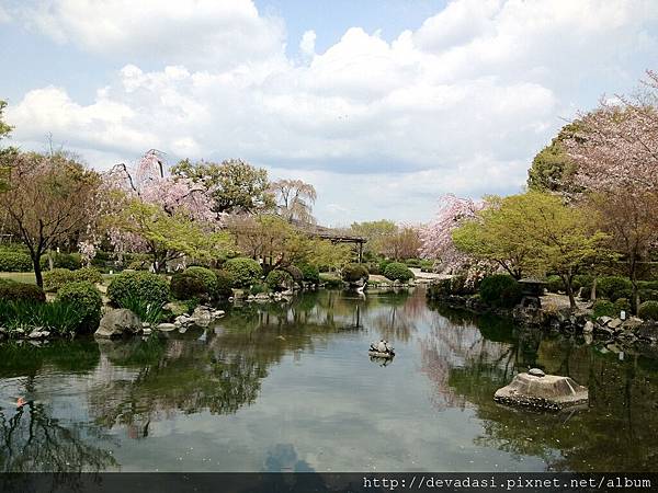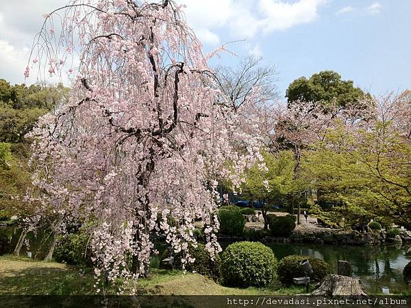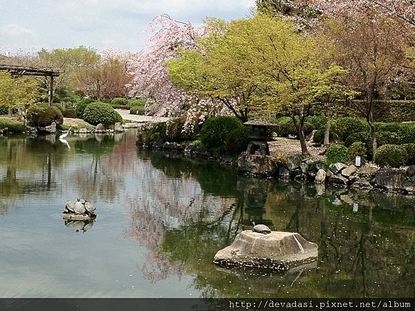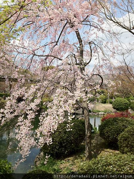 像這個小水池的角落就有搖曳生姿的八重櫻。