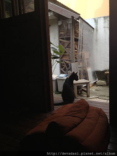 在屋外長廊對著這隻偷心賊咪了一聲,