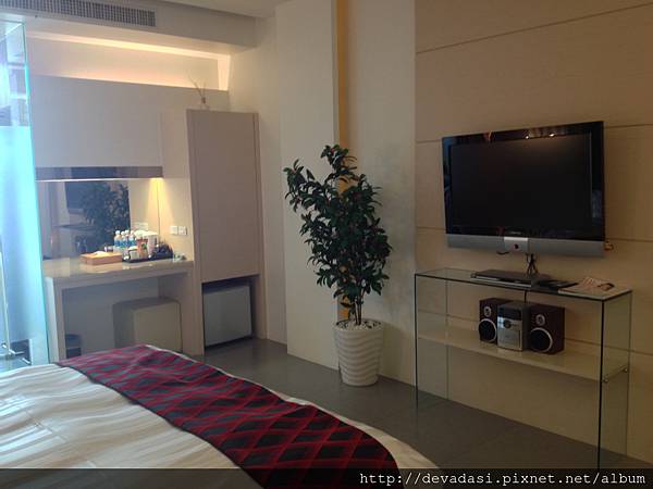 床的對面是電視、音響及DVD播放器。