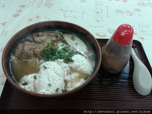 是沖繩當地的soba麵,加上土產豆腐、魚板和豬肉,