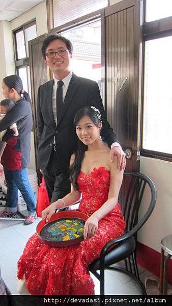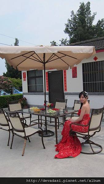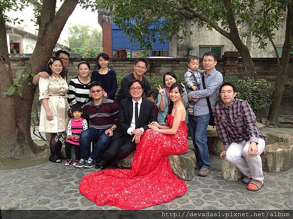在超澎湃好吃的的婚宴中抓到空檔到詹家院子幫我拍照。