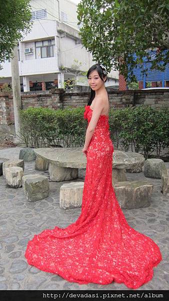 決定選擇喜氣又貴氣的紅色蕾絲禮服,