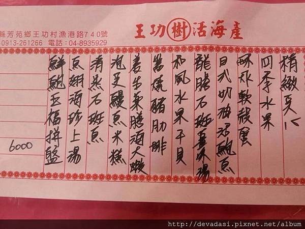 彰化家宴的菜單,